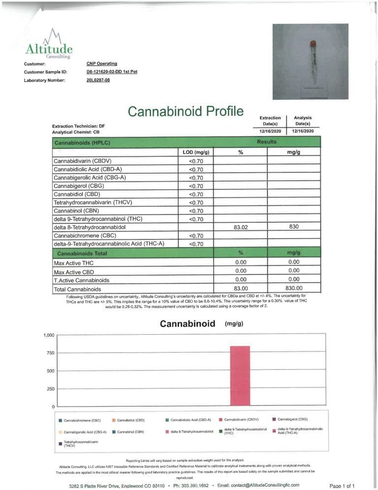 This is a very pure, very concentrated vape product. It may be harsh on the throat to those who are not accustomed to concentrated cannabinoid products. Additionally, Δ8THC is a harsh cannabinoid. Take small puffs. Do not exceed 3 seconds per puff.